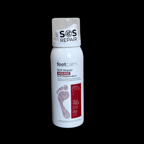 – Nato nanesite SOS Repair Mousse po celotnem stopalu, s poudarkom na področju med prsti (še posebej med 4. in 5. prstom) ter na najbolj prizadetih delih.